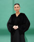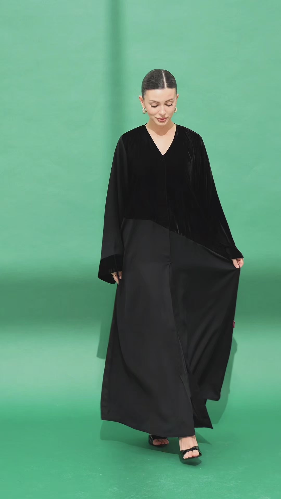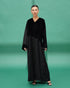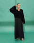 The upper part is full velvet, while the lower part is made of Nada fabric. The left sleeve is entirely velvet, and the right sleeve is Neda with a velvet touch at the end. A soft and unique design that combines the luxury of velvet with the lightness of Nada.