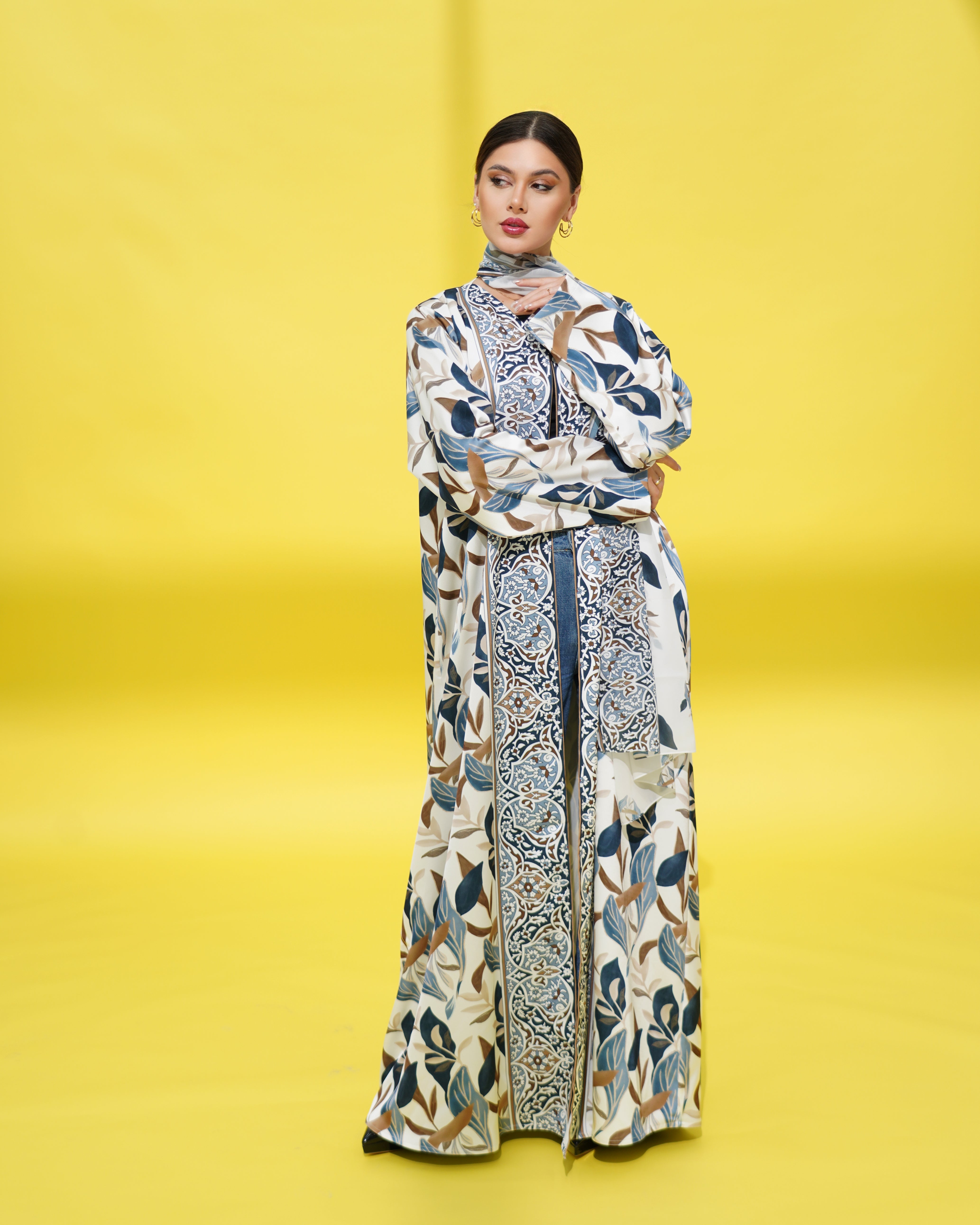 Abaya made of crepe fabric with a special print that gives an elegant and neat look. It comes with a matching printed sheila that perfectly aligns with the abaya’s design