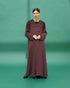 عباية من قماش ندى، خفيفة وانسيابية بملمس مطفي، مزينة بشرائط قماش مع أزرار في الأمام ونفس التفاصيل مكررة على الأكمام لإضافة لمسة أناقة بسيطة.