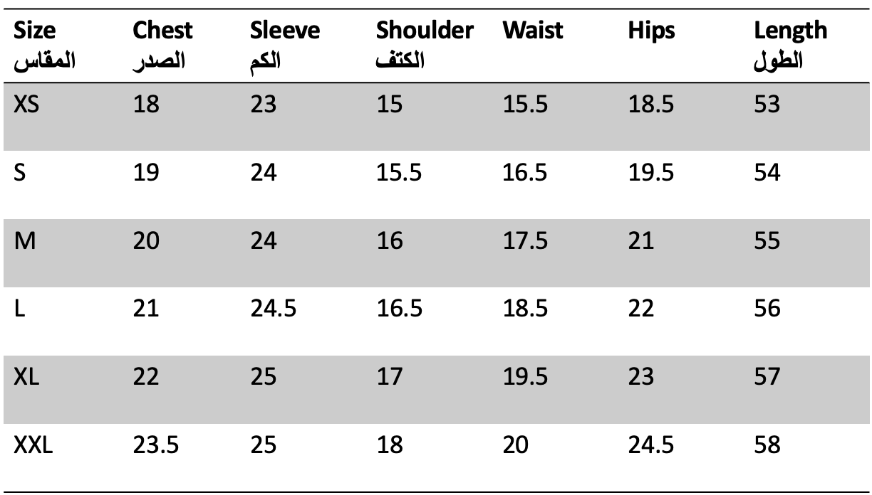 Size chart