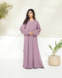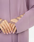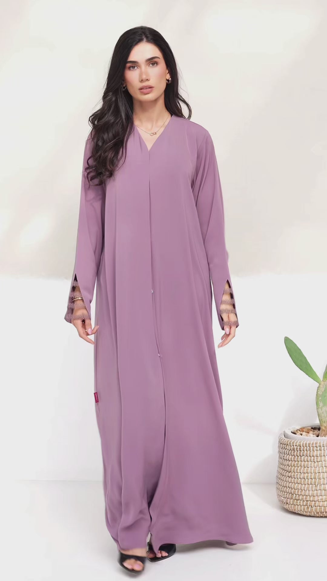abaya featuring delicate lace details with a layered sleeve design, where the fine layers add depth and a touch of refined elegance to the look.