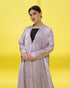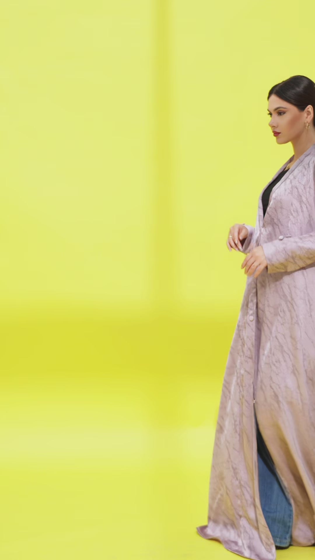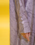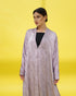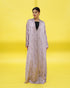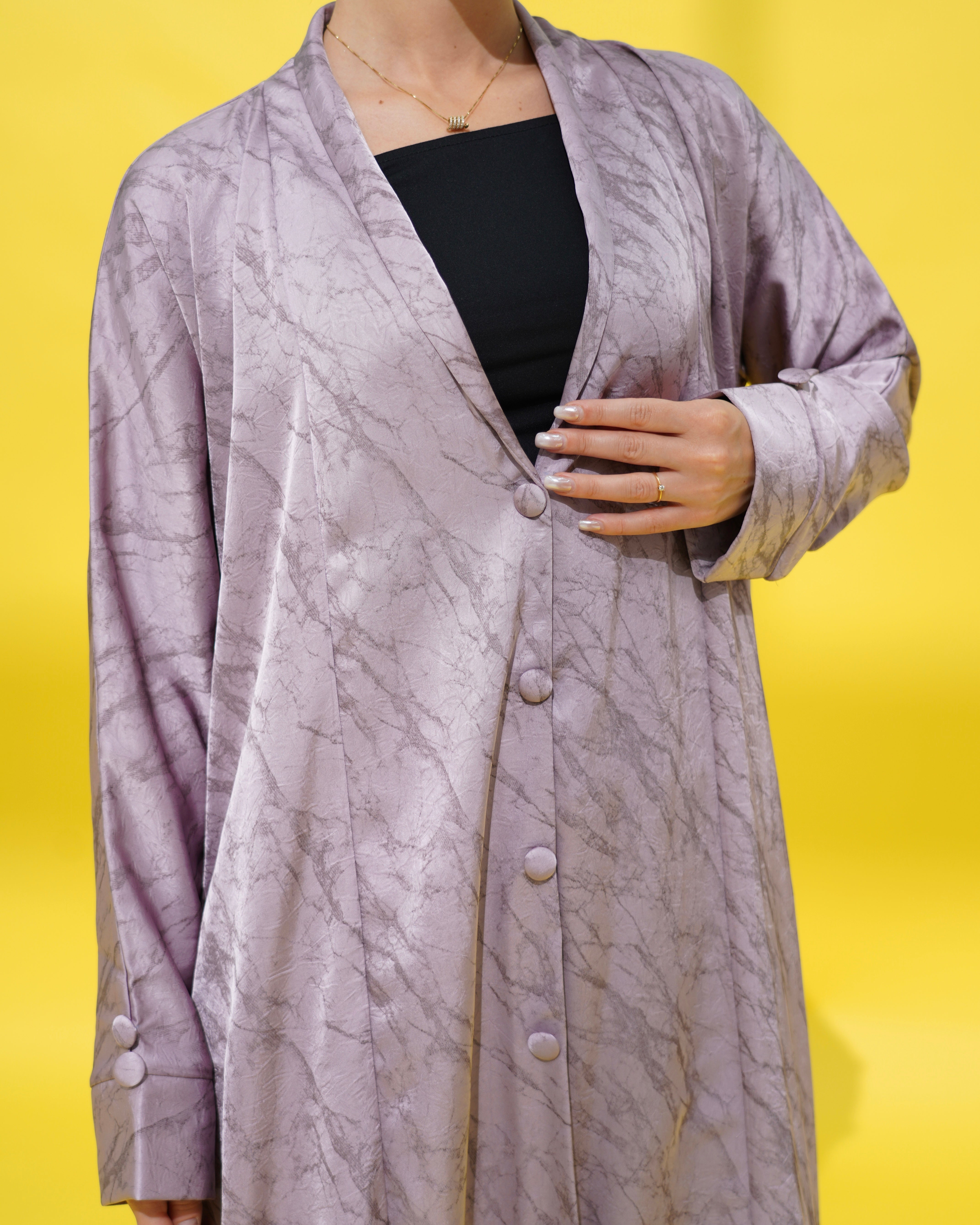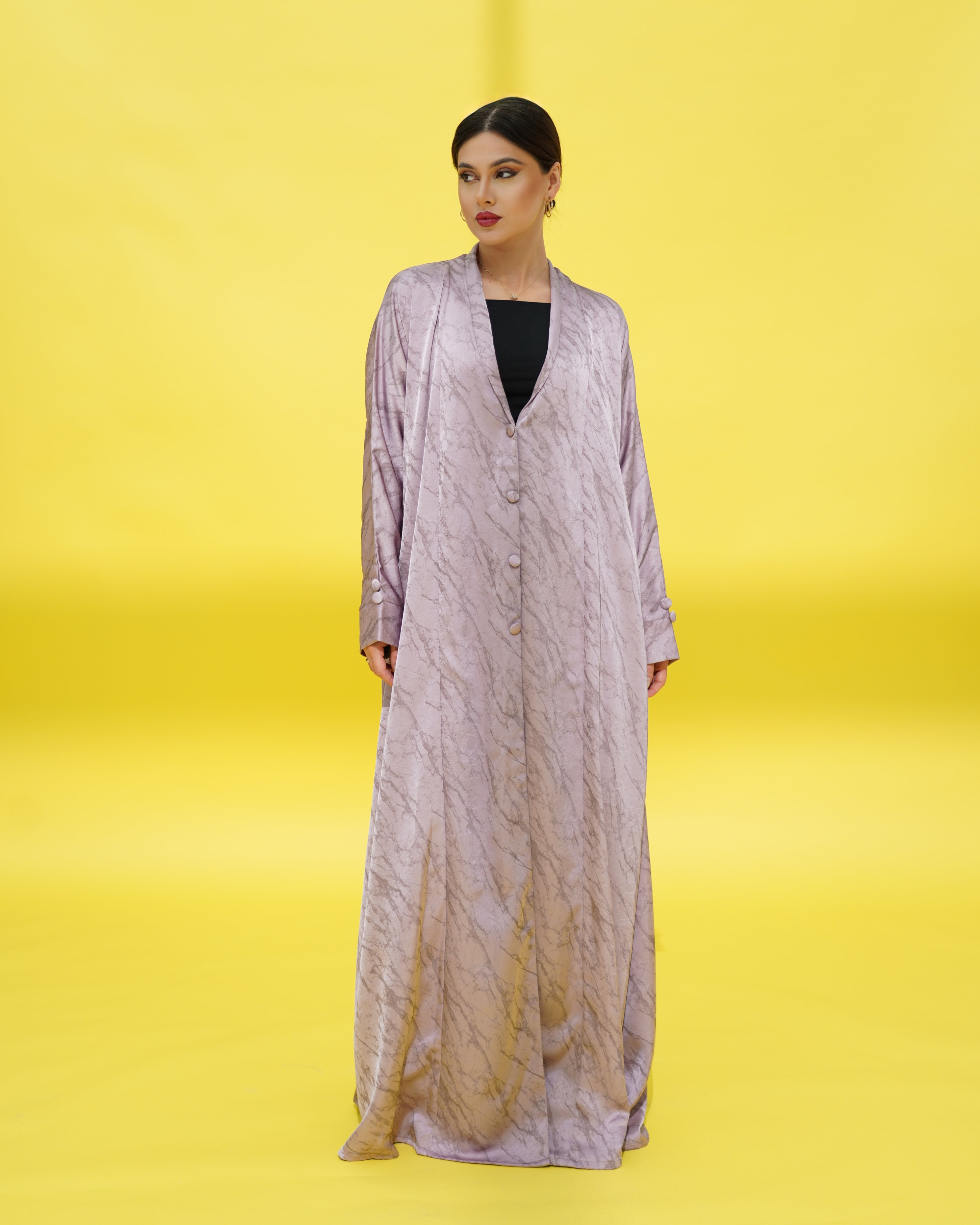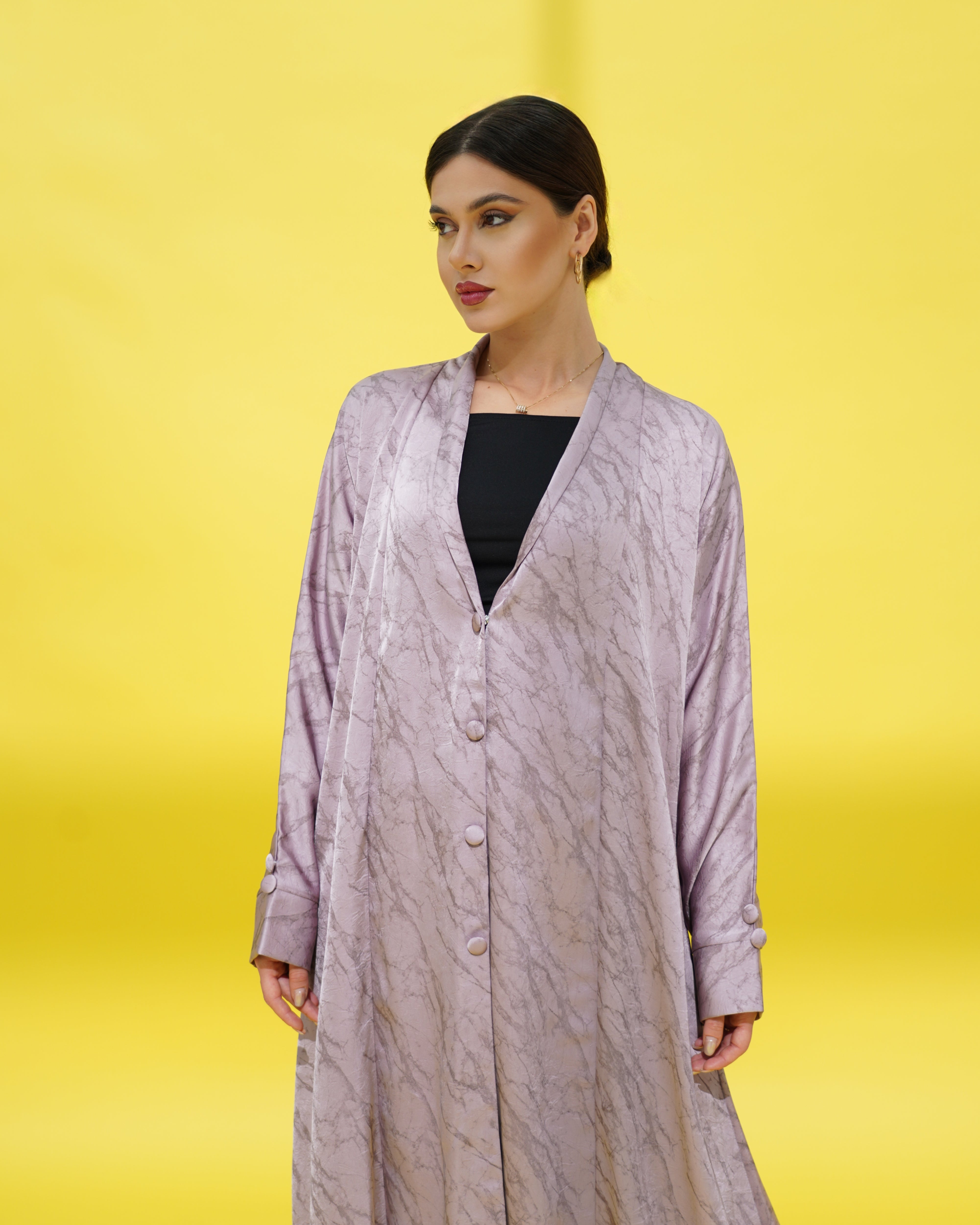 عباية بنقشة خفيفة، مع أزرار أمامية وأزرار على نهاية الأكمام بنفس القماش.