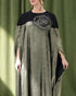 An elegant dress with a wide, flowing silhouette, featuring loose open sleeves that add a refined feminine touch.